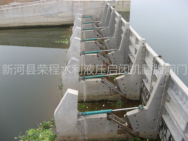 翻板閘門(mén)于液壓?jiǎn)㈤]機(jī),這種閘門(mén)能夠在任何水位下準(zhǔn)確、安全開(kāi)啟和關(guān)閉,以及在未開(kāi)動(dòng)液壓系統(tǒng)前提下,達(dá)到相應(yīng)水位后仍能進(jìn)行正常開(kāi)啟和關(guān)閉,使翻板閘門(mén)在運(yùn)行中更可靠、安全。